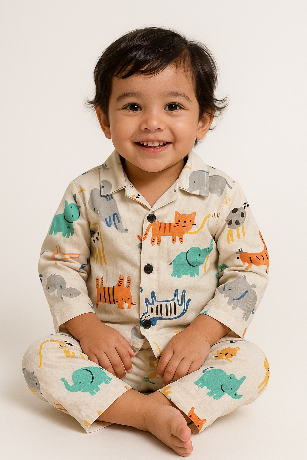 🌙 Kids Collar Bedtime Cotton Set (1–2 Years)