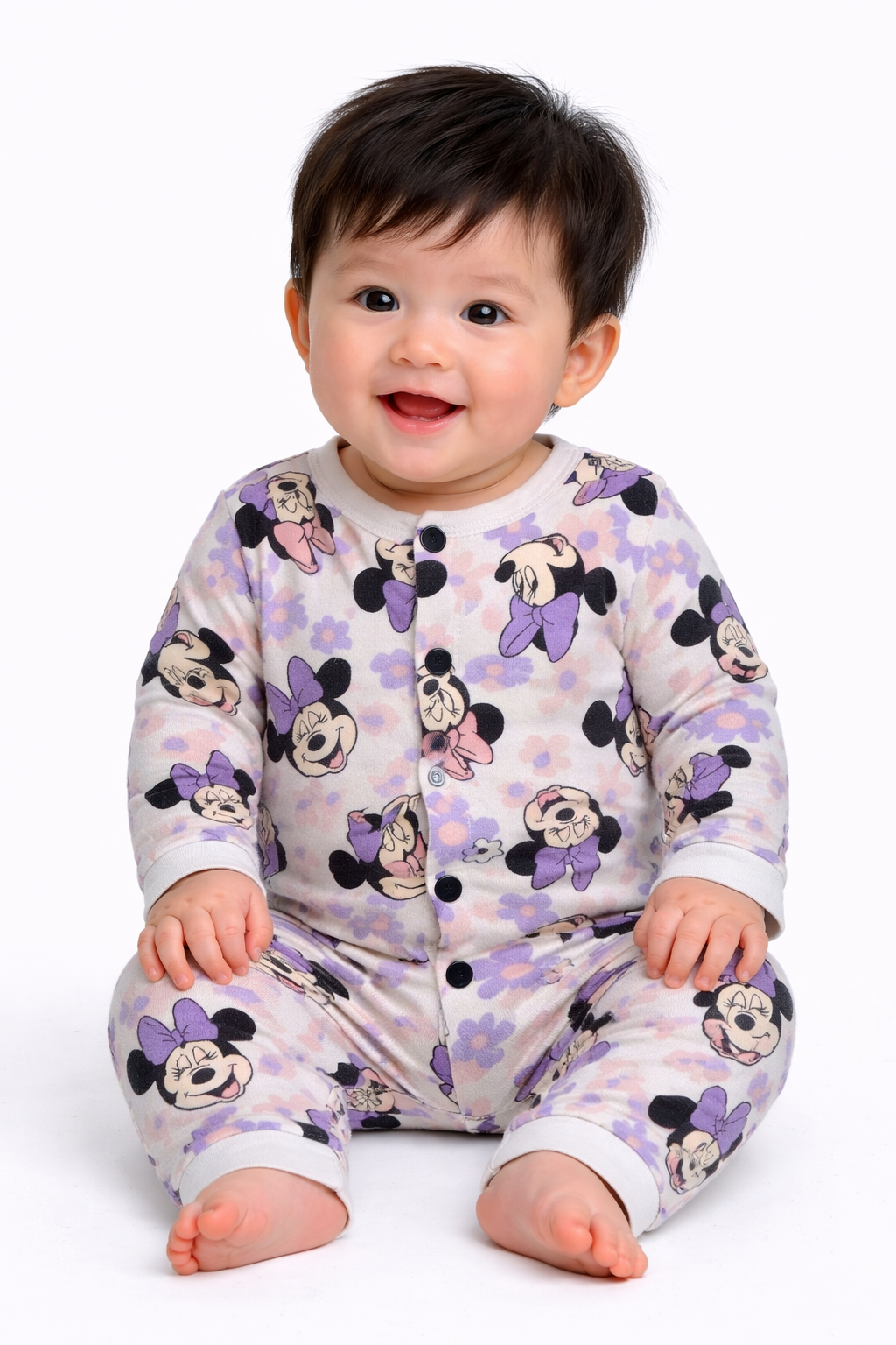 Front Open Full sleeves Cotton Tshirt with Pant (Lavender Minnie)