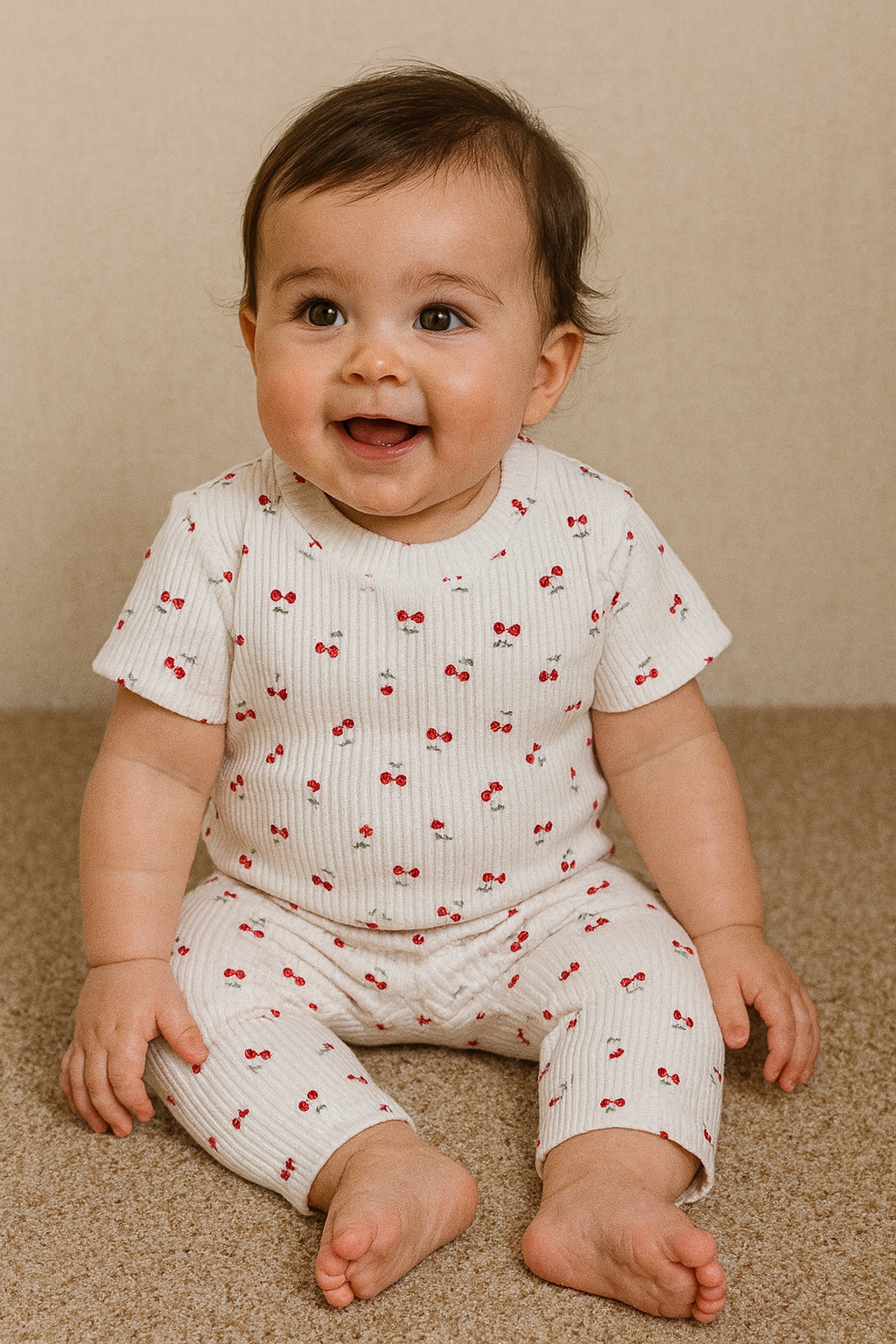 Half sleeves Ribbed Tshirt with Pant (Cream Cherry🍒)
