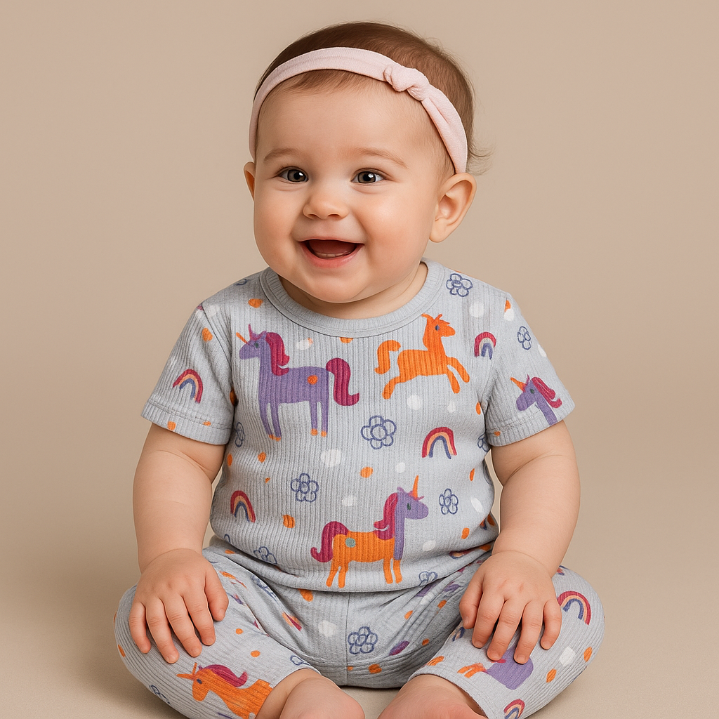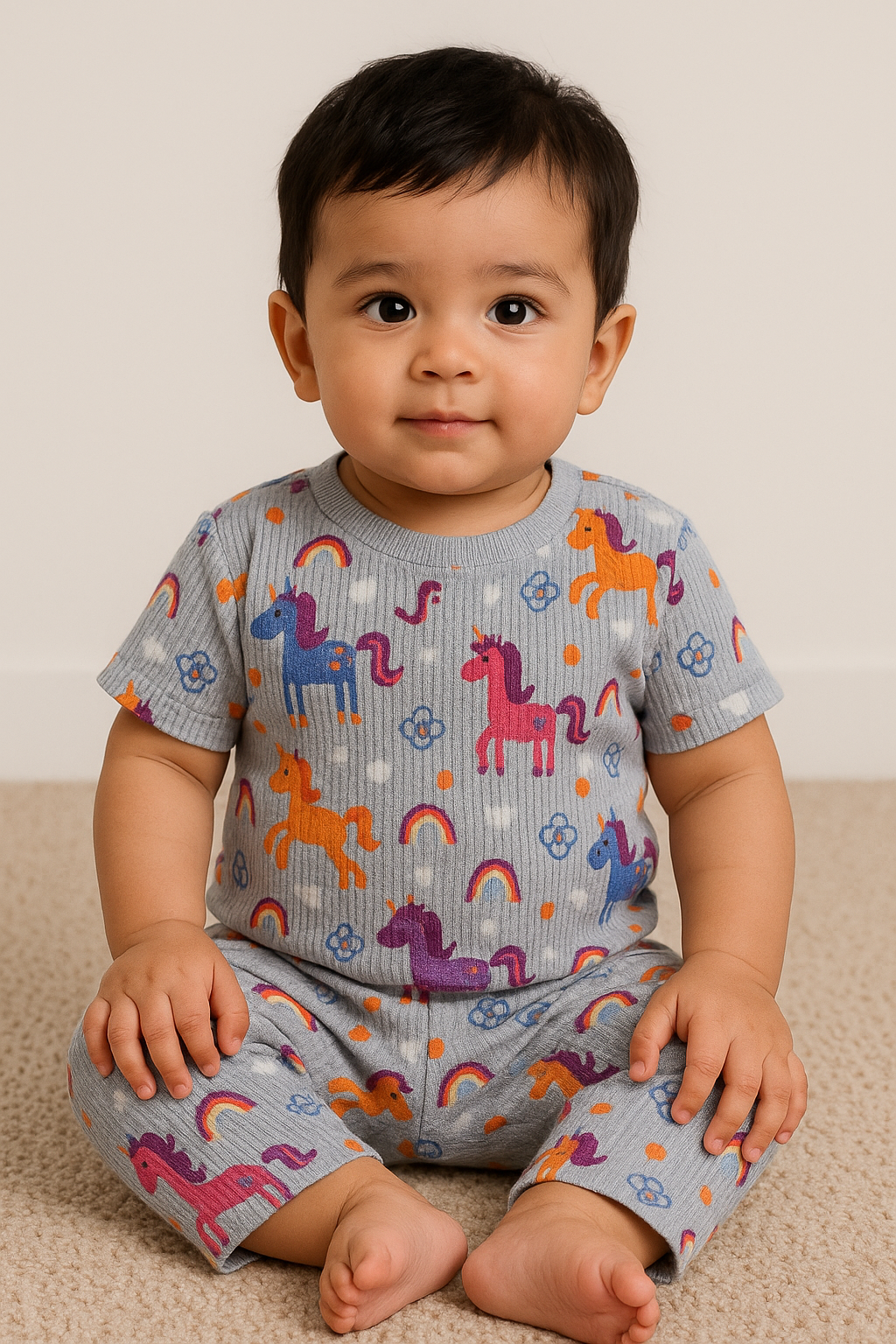 Half sleeves Ribbed Tshirt with Pant (Rainbow 🌈 Unicorns🦄)